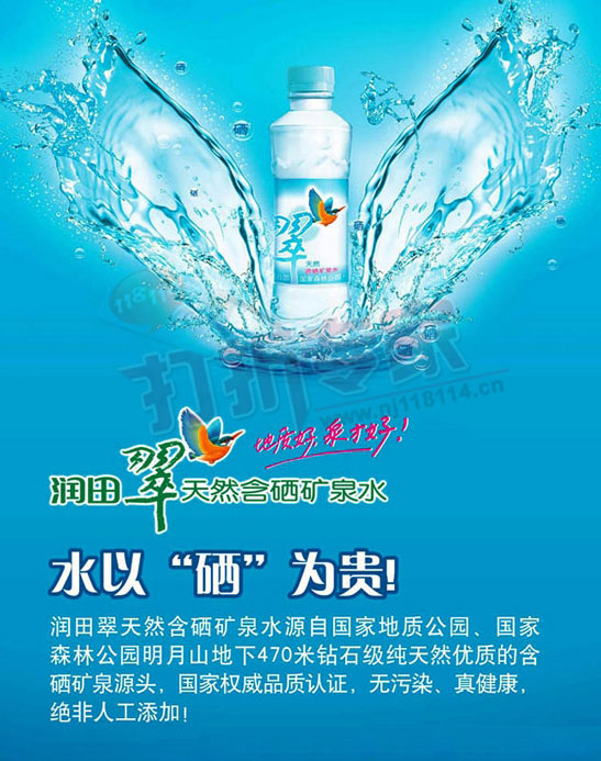 ,具有抗癌抑瘤,抗氧化等作用,是人体必不可缺的珍惜微量元素,润田·翠天然含硒矿泉水达到并优于国家饮用天然矿泉水标准。且含有硒、钾、钠、钙、镁、偏硅酸等近20种对人体非常有益的微量元素组成,pH值呈天然弱碱性,长期饮用该矿泉水将对人体的骨骼、心血管、神经系统等具有较好保健作用。