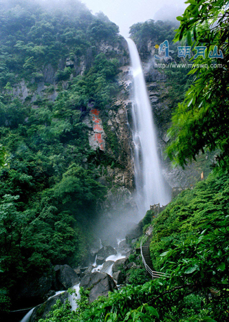 【自然风光秀美迷人】 明月山风景区属亚热带湿润季风性气候,山水奇特,气候温和,年平均气温在12℃--15℃左右,年平均降水量为1800-2000mm,适应各种动植物生长,素有"天然动植物园"之美称。因为原始风貌保护良好,植被茂盛,所以空气负离子含量高达每立方厘米7万多个,是国家标准的35倍,堪称"天然氧吧"。现在开发较为完善的有潭下景区,这里有万顷竹海青翠欲滴,穿行于竹林心旷神怡,景区更有五叠形态各异、各具特色的瀑布令人叹为观止,其中"云谷飞瀑"全长119.57米,属江西第一高瀑,还有"玲珑瀑"、"鱼鳞瀑"、"玉龙瀑"和"飞练瀑"都各具特色,美不胜收。